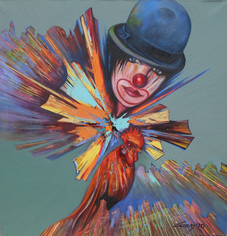 10 Klovn i petao, ulje na platnu, 100x100 cm, Ivan Vanja Milanovic. sertifikat, 1000 evra
