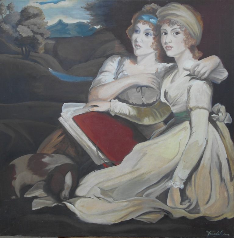 Sestre Frenklend kopija po slikaru Dzonu Hopneru, ulje na platnu, 85x85 cm, akademski sl. Goran Bankovic, 2001, sertifikat, 350 eura